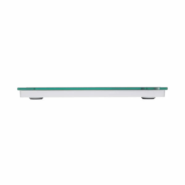 The weighing scale offers the perfect amount of functionality in both design and function to help those looking to take control of their health regimen. The 12" x 12" glass platform has beautiful clear glass with stainless steel, and a grey accented design that fits into any bathroom environment. Estimate body fat, body water, and muscle mass percentages for up to 4 users in either standard or athlete modes. View information quickly from a 3" x 1.96" blue backlit display. This scale also features a high 400 lb capacity, a 5-year limited warranty, and 3 AAA batteries.